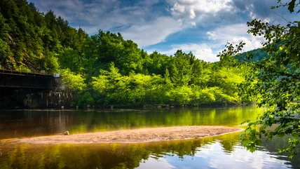 The Lehigh Gorge was carved out of the Lehigh River over millions of years. This river in the Pocono Mountains was used to transport coal at the turn of the 19th century. Canals, dams, and locks were built to move barges. Coal mining gave way to logging in the century's latter half. The land was practically destroyed. By 1980, thick foliage had regrown along the Lehigh River, and 6,107 acres, from the Francis E. Walter Dam in White Haven down to Jim Thorpe, was turned into Lehigh Gorge State Park. The beautiful state park is now a favorite spot for outdoor adventure seekers.