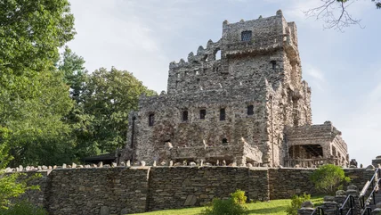 William Hooker Gillette became famous throughout the world for being the first actor to portray Sherlock Holmes on stage and screen. He can be credited with inventing some of the most famous aspects of the character, including the deerstalker cap, pipe, and the phrase "Elementary, my dear Watson." Gillette's massive success provided him the necessary funds to build his dream estate. He called it the "Seventh Sister" after the hills surrounding it, and lived there from its completion in 1924 to his death in 1937.
