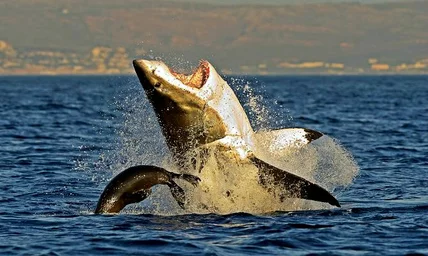 The great white shark is also known as... white death. Great white sharks are responsible for the greatest number of recorded shark attacks on humans. They have attacked boats, sinking them, and then attacking the people falling overboard. Fun fact: You can go cage diving in South Africa and see great white sharks up close.